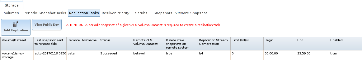 - Replication Tasks automate the replication of snapshots to a remote system.